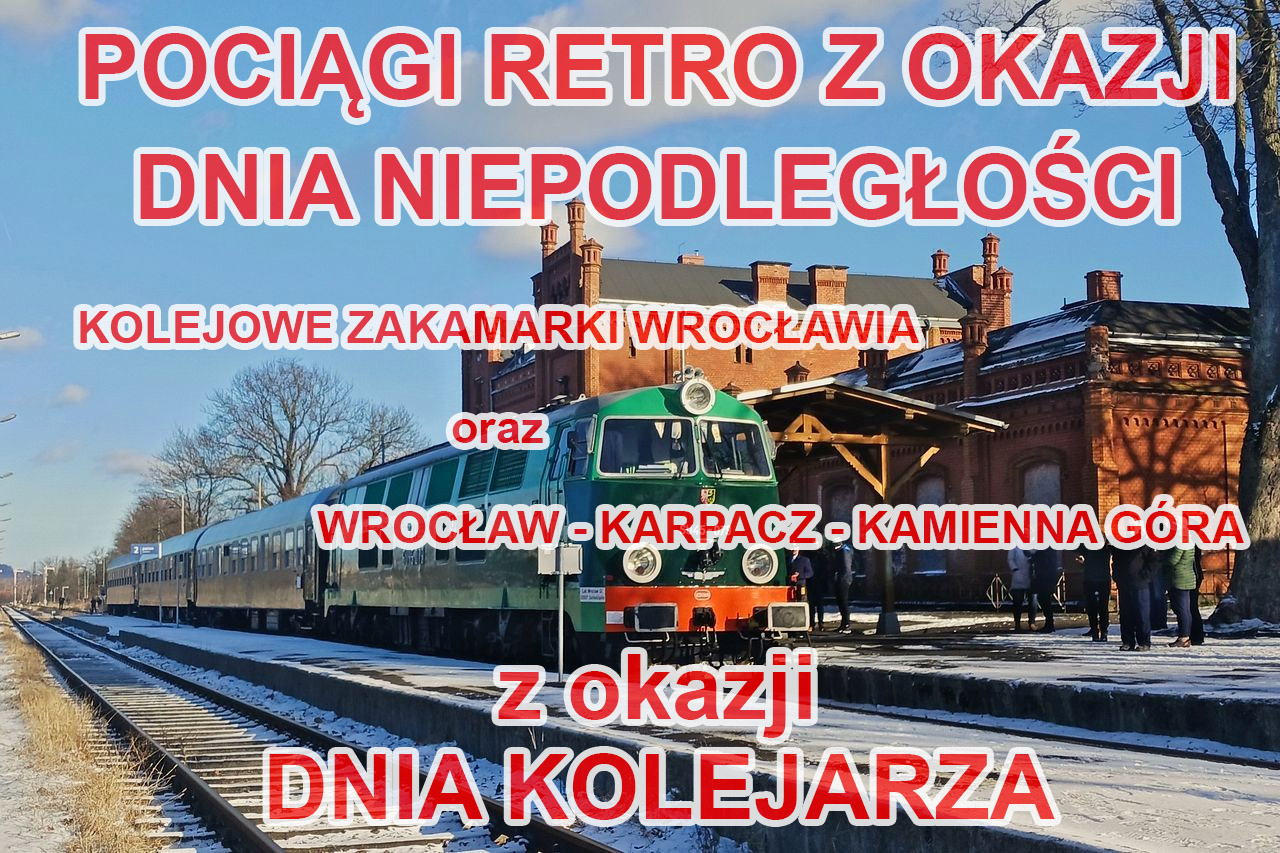 W Święto Niepodległości miłośnicy kolei i wszyscy ciekawi Wrocławia widzianego z kolejowej perspektywy będą mogli wziąć udział w niezwykłej podróży po wrocławskim węźle kolejowym. Tego dnia uruchomione zostaną aż 4 pociągi retro, które poprowadzą uczestników przez znane i zupełnie nieznane odcinki torów – także te, po których na co dzień kursują wyłącznie pociągi towarowe. Przejedziemy również przez najwyższy punkt wrocławskiego węzła kolejowego, który znajduje się na podwójnym wiadukcie kolejowym nad ulicą Grabiszyńską. Tego dnia aż dwukrotnie pociągi pojadą kolejową Towarową Obwodnicą Wrocławia!